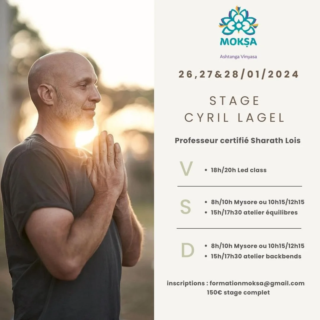 Cyril guidera la série dans le respect de la lignée transmise par son proffeseur Sri R. Sharath Jois, petit fis de Sri K. Pattabhi Jois.